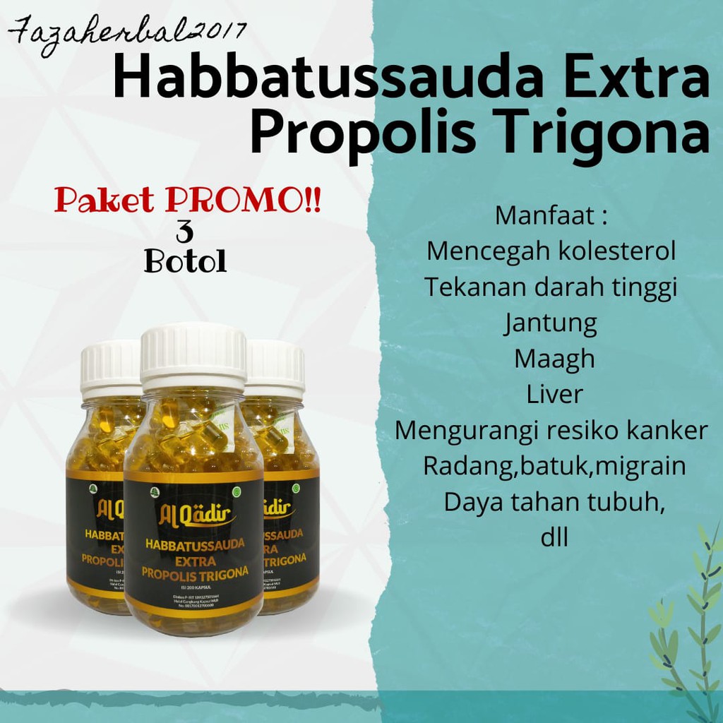 Beli HARGA PROMO 3 Habbatussauda Extra propolis Trigona 200 kapsul di sini